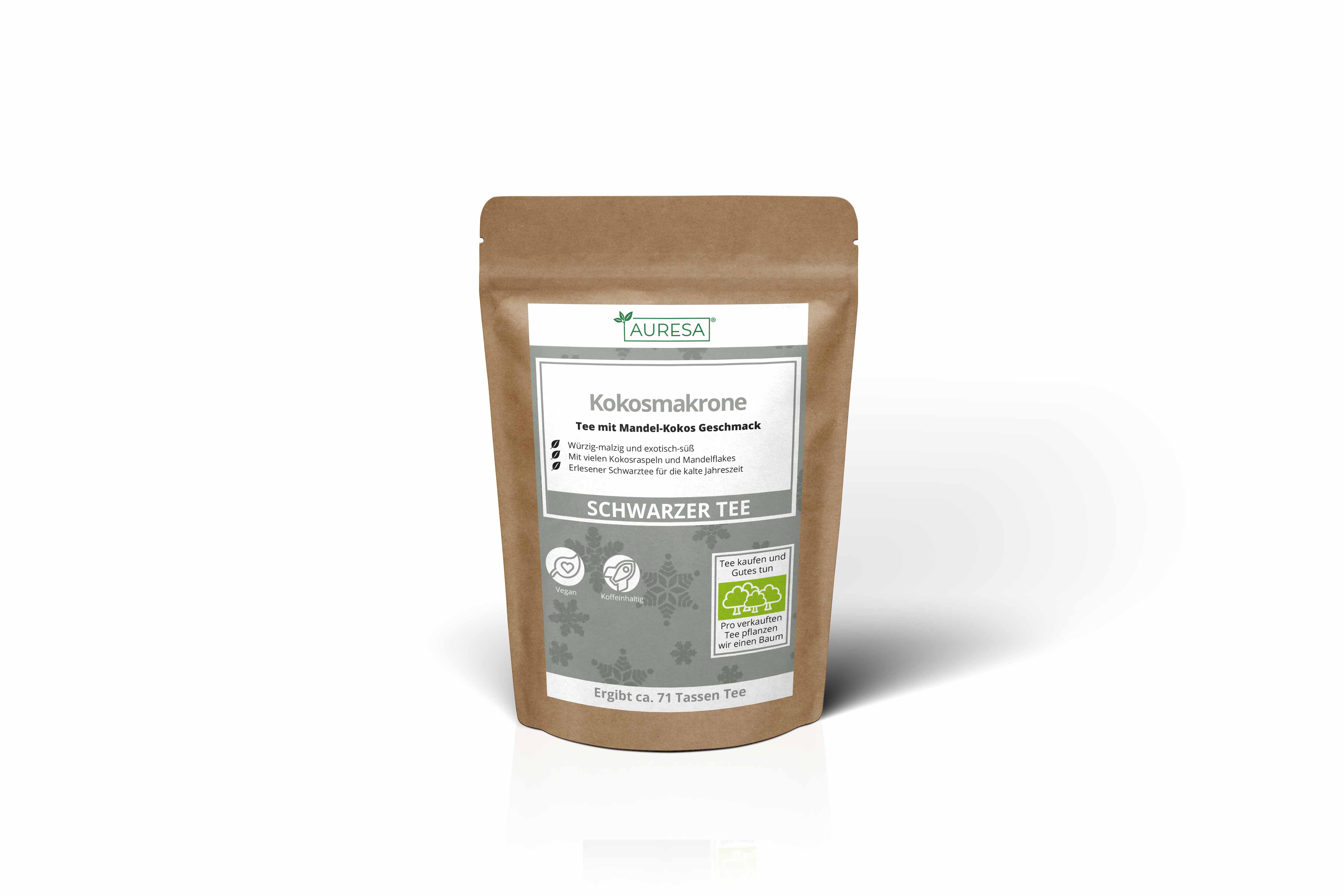 Wenn der herrliche süße Duft des Tees nicht schon Ihre Lebensgeister weckt, dann erledigt das spätestens sein Koffeingehalt. Unser schwarzer Tee Kokosmakrone ist nämlich ein toller Wachmacher, mit dem sich die frühen Morgenstunden gleich viel angenehmer gestalten. Weihnachtsgebäck kann man ab jetzt auch trinken!