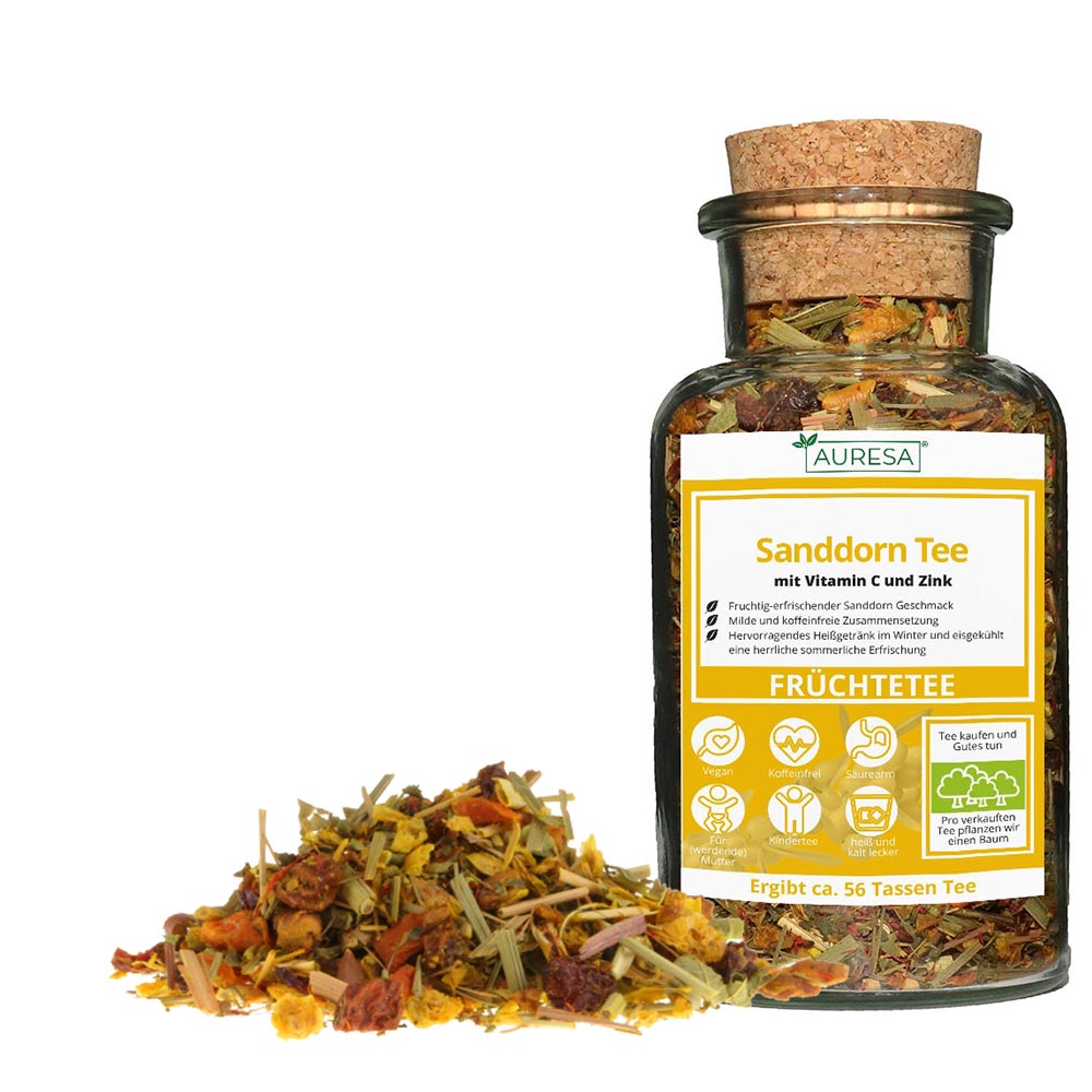 Wer schon einmal zu Gast auf den ostfriesischen Inseln war, für den ist Sanddorn bestimmt ein altbekanntes Gesicht. Die kleinen orangen Beeren wachsen dort nicht nur überall auf den Dünen, sondern werden von den Einheimischen auch zu zahlreichen Leckereien verarbeitet. Dazu zählen Likör, Marmelade, Bonbons und eben auch Sanddorn Tee. Und genau diese ostfriesische Spezialität kommt jetzt ganz bequem zu Ihnen nach Hause.