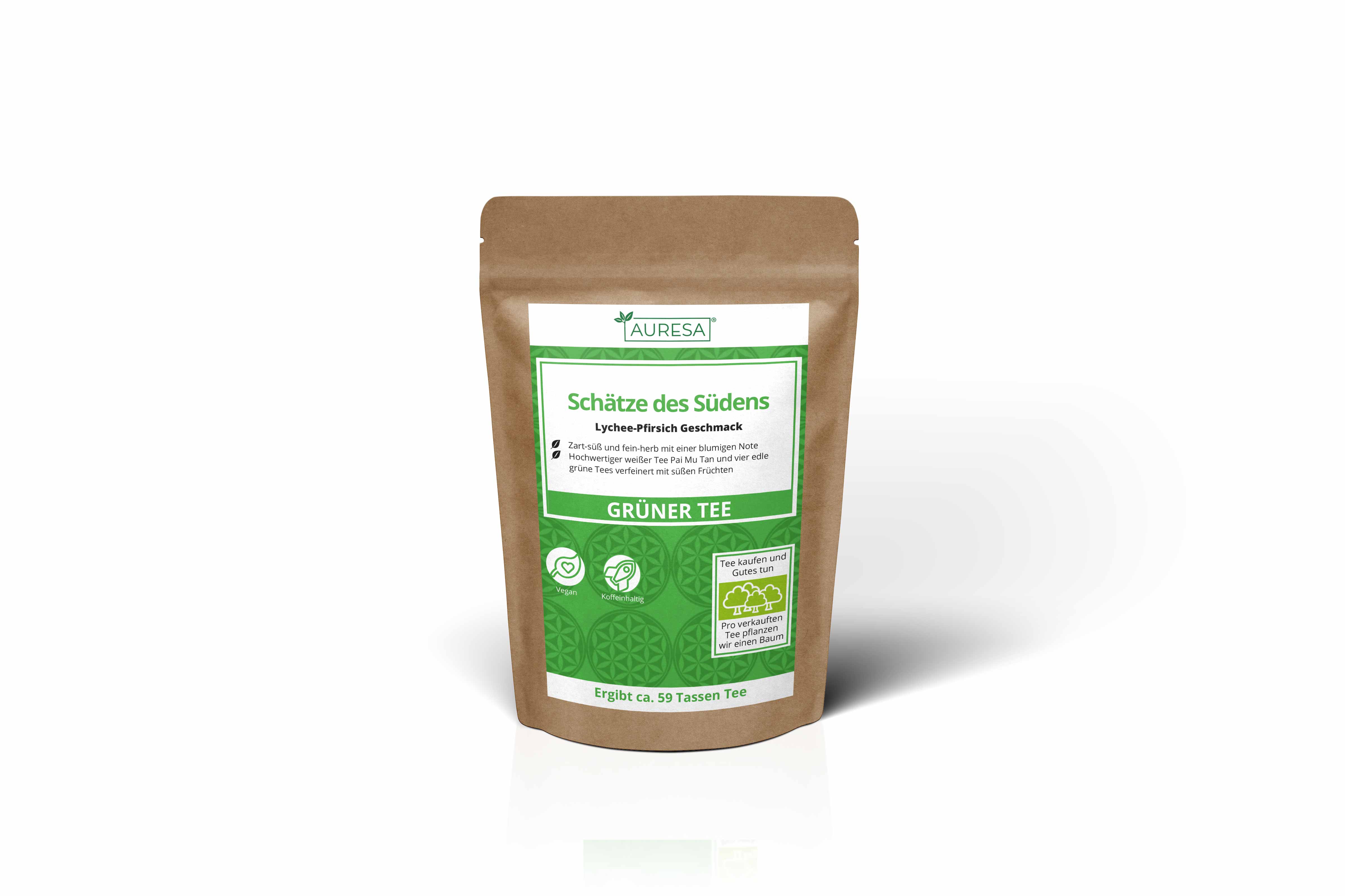 Bei diesem Tee kommen Früchtefans voll auf ihre Kosten! Schließlich duftet unser grüner Tee Schätze des Südens nicht nur wunderbar erfrischend und fruchtig, sondern schmeckt auch so. Der zart-süße weiße Tee Pai Mu Tan harmoniert wunderbar mit dem lieblich-herben Charakter der grünen Tees Darjeeling, Nebeltee und Lung Ching, während Jasmin Jade Pearls für eine leicht blumige Note sorgen.