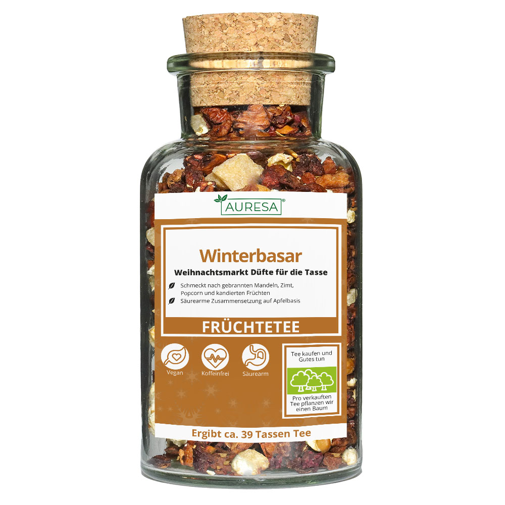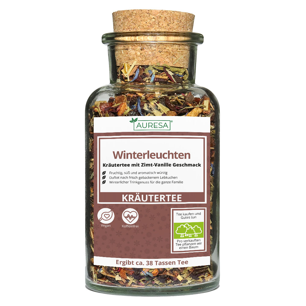 Ein winterlicher Kräutertee und zwei Früchtetees
